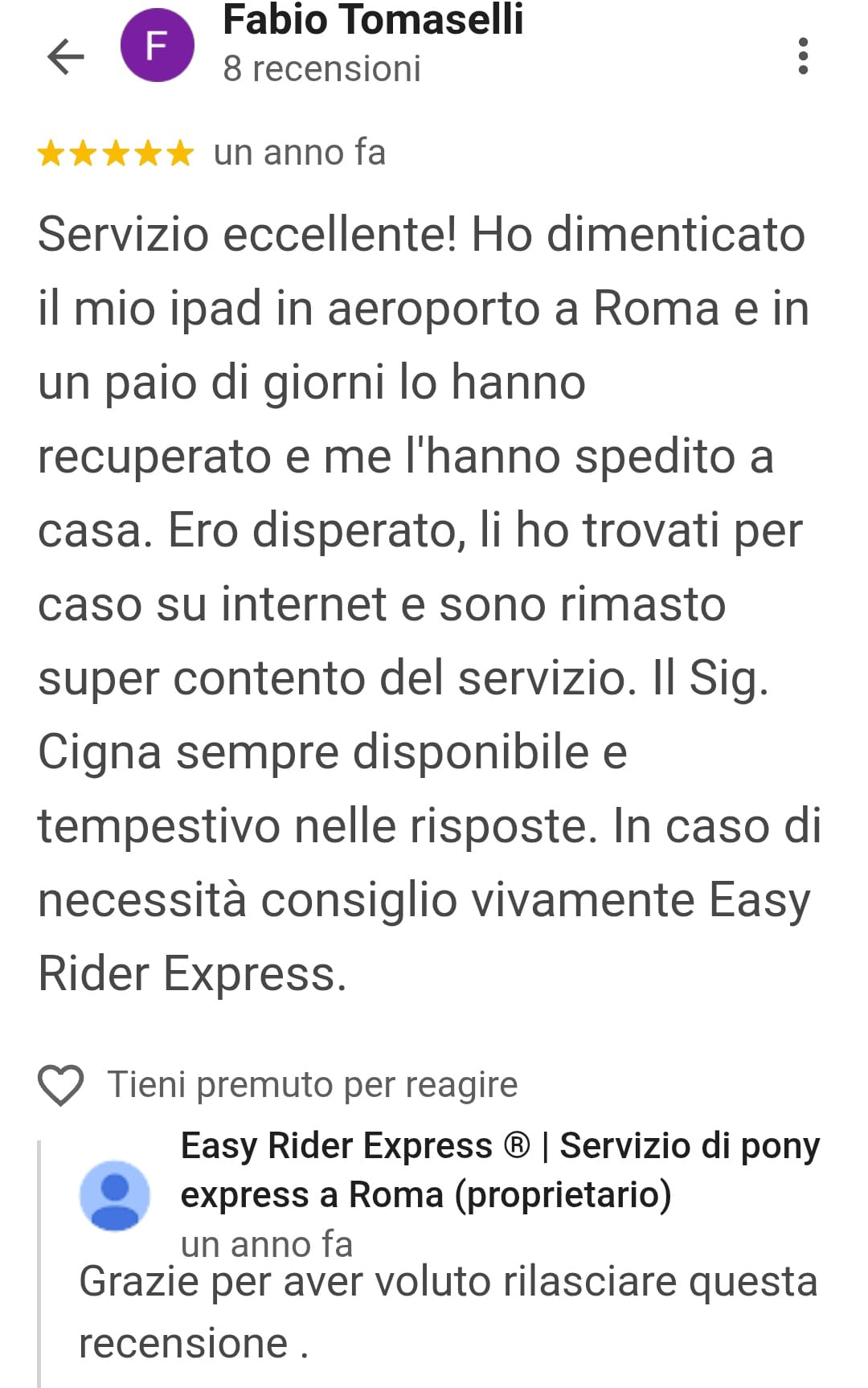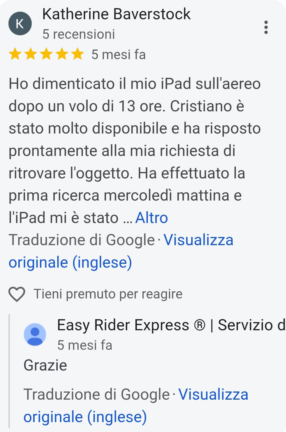 Per aprire una pratica inviate una email a lost&found@easyriderexpress.it con: